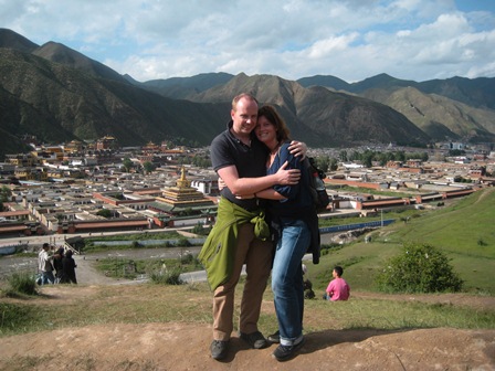 Samen uitkijken over een vallei met yak’s (lijkt op een naieve koe) en schapen op de Tibetaanse hoogvlakte net na een bezoek aan een Tibetaanse tempel, bracht een gevoel van ultiem geluk naar boven. Wat een frisse lucht en heerlijk land.